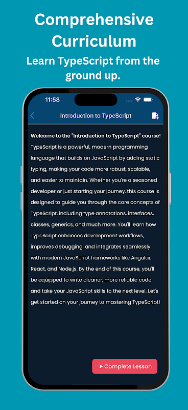 Profesjonalni programiści: niezależnie od tego, czy chcesz odświeżyć swoje umiejętności w TypeScript, czy też chcesz być na bieżąco z najnowszymi funkcjami, ta aplikacja jest doskonałym źródłem informacji dla doświadczonych programistów.