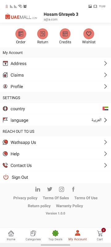 UAEmall.com to pierwsze centrum handlowe online w Zjednoczonych Emiratach Arabskich, które rozpoczęło się w 2020 r. Sklep internetowy zdobył wiele nagród na Bliskim Wschodzie, aby dotrzeć ze swoimi usługami do wielu klientów na Bliskim Wschodzie. Aby przyjąć swoją krajową rolę i obowiązek we współpracy z każdym podmiotem i osobą fizyczną w Zjednoczonych Emiratach Arabskich, więc zdecydowałem się zaoferować jej usługi online jako organizację non-profit, aby zapewnić podstawowe środki do czyszczenia / dezynfekcji domu, podstawową elektronikę, a wkrótce podstawowe artykuły spożywcze do twoich drzwi za opłatą, abyś mógł być bezpieczny ze swoim rodzina w domu