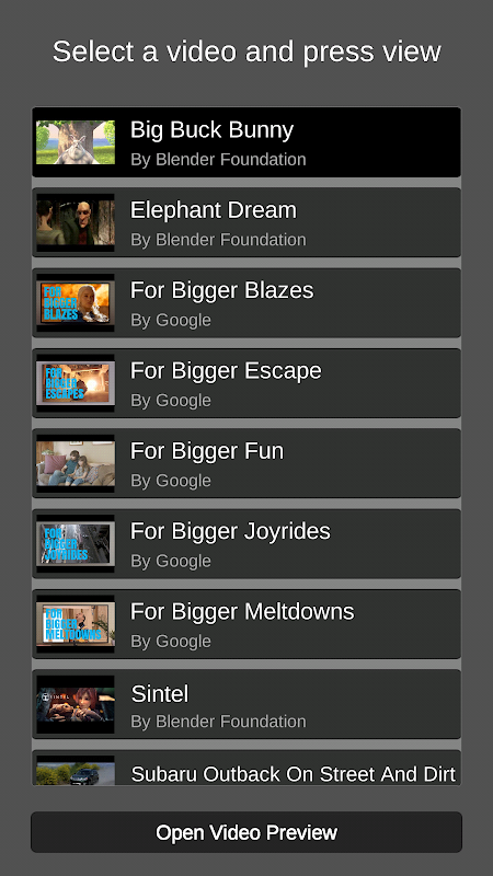 Aplikacja demonstracyjna wtyczki uCAST, która umożliwia wyświetlanie różnych plików i strumieni na kompatybilnym urządzeniu-odbiorniku Google Cast®.
