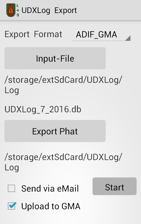 UDXLog obsługuje eksport ADIF w celu przekazywania danych dziennika. Możliwy jest również eksport w formacie CSV (również w formacie GMA v2).