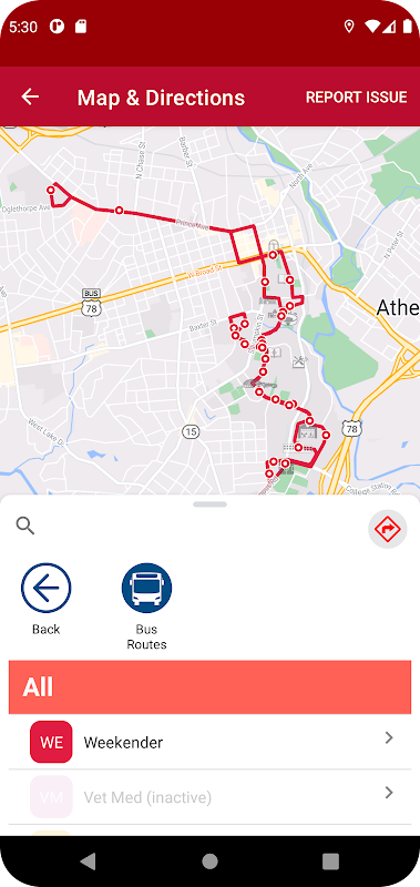 * trackery autobusowe dla UGA Campus Transit i Transit Atenach