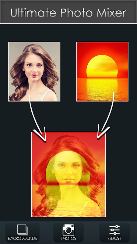 Z łatwością twórz zwykłe codzienne zdjęcia, wybierz zdjęcie z galerii lub przechwyć z kamery i wymieszaj to zdjęcie z naszą obecną wspaniałą kolekcją obrazów lub wybierz inne zdjęcie z kamery / galerii i połącz je ze sobą, aby uzyskać niesamowity rezultat.