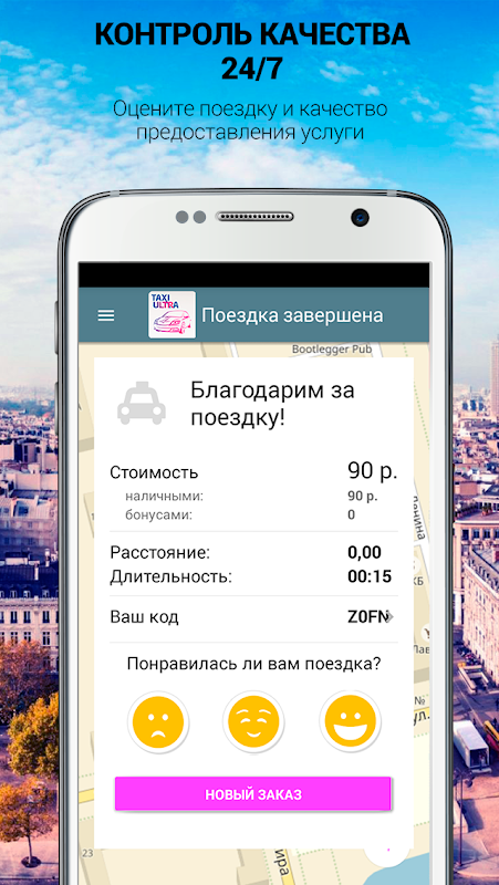 Чтобы вызвать машину через приложение ULTRA TAXI , достаточно нажать несколько кнопок на экране смартфона. Приложение сообщит Вам о стоимости заказа, времени подачи такси, госномере и марке автомобиля и будет держать Вас в курсе всех событий, касающихся выполнения заказа.