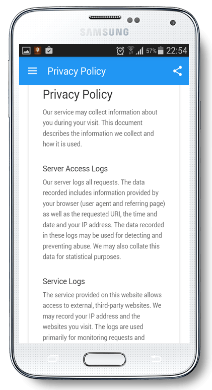 by using our mobile application you can browse all sites easily and anonymously. because our proxy server provide you fast and highly anonymous internet surfing which hides your identity and allows you access all restricted websites.