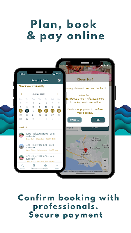 Znajdź adresy lekcji surfingu, zabiegów kosmetycznych, tatuatorów i/lub wydarzeń w pobliżu Twojego miejsca zamieszkania: możesz przeczytać recenzje i dokonać rezerwacji za pomocą kilku kliknięć w aplikacji. 24 godziny na dobę, 7 dni w tygodniu.
