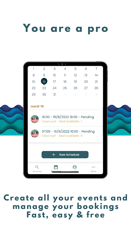 Rezerwacja online lekcji surfingu, zabiegów kosmetycznych i innych usług.