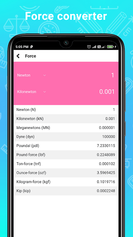 To niesamowite, gdy ktoś znajdzie aplikację kalkulatora konwersji typu „wszystko w jednym” do celów edukacyjnych i roboczych. Nasza aplikacja do konwersji jednostek sił jest jedną z najlżejszych aplikacji zwiększających produktywność. Jest to uniwersalna aplikacja do przeliczania jednostek, która może konwertować jednostki różnych kategorii. Bezpłatna aplikacja konwertera jednostek ma prosty interfejs dla osób należących do każdego rodzaju dziedzin, takich jak studenci i inżynierowie elektrycy lub mechanicy oraz projektant architekt itp.