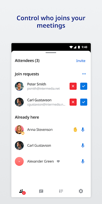 - Kontroluj dźwięk i przeglądaj listę uczestników