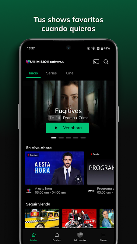 Będziesz miał na wyciągnięcie ręki wszystkie programy na żywo z Univision i UniMás na żywo i na żądanie. Dostęp do aplikacji Univision można uzyskać za pomocą większości usług telewizyjnych, w tym Comcast Xfinity, DirecTV, Dish, Spectrum, AT&T, Verizon FIOS i innych.
