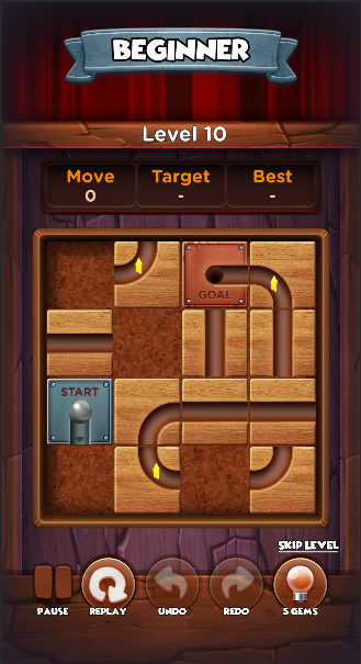 The gameplay is as simple as moving and sliding the tile slots with your finger and your objective is to keep sliding until you find a path for the ball to roll to the specified Goal. While the first levels of this brain training puzzle game are easy to solve, you get to face more difficult challenges as you progress.