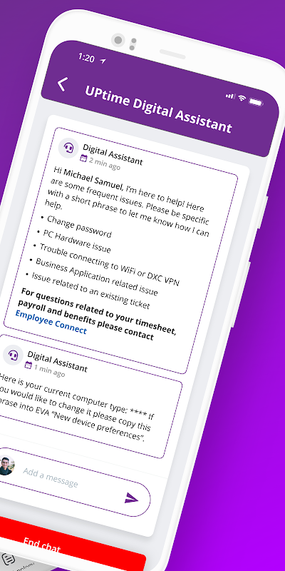 Pozwól, aby doświadczenie użytkownika oparte na ścieżce poprowadziło Cię do zamawiania nowych urządzeń i sprzętu, zgłaszania problemów, otrzymywania wiadomości firmowych, wyszukiwania wiedzy, zarządzania przepływem pracy i powiadomieniami oraz czatowania z agentami cyfrowymi i ludzkimi za pośrednictwem jednego zintegrowanego i zorientowanego na użytkownika środowiska.