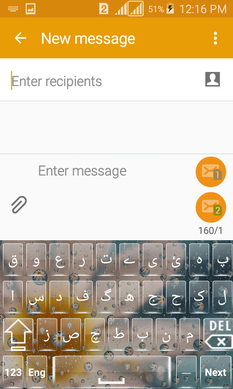 Water Drop Urdu KeyBoard is specially design for those people who want to write text sms in urdu and english.it helping you to write funny sms or poetry