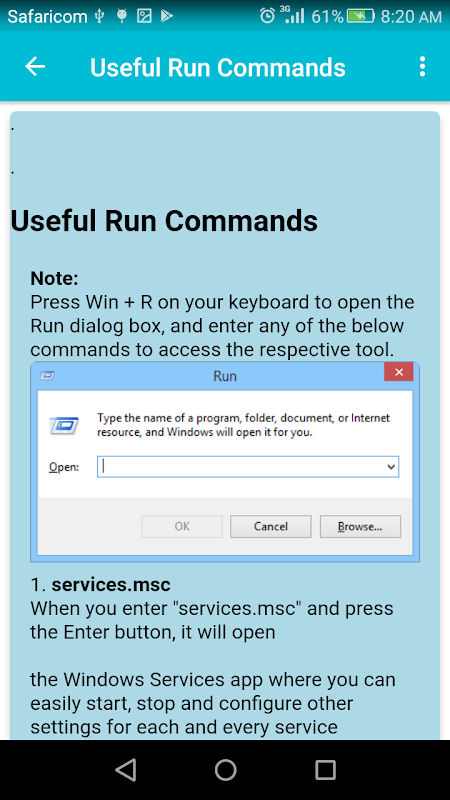 Useful run commands brings windows run commands to your finger tips-your device.