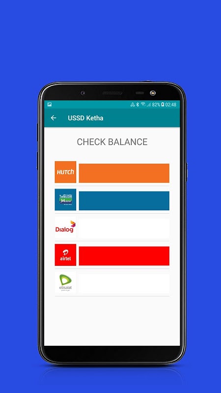 Using this application, you can find most used USSD codes in sri lanka in various network providers such as Hutch , Etisalat , Dialog , Mobitel , Airtel..