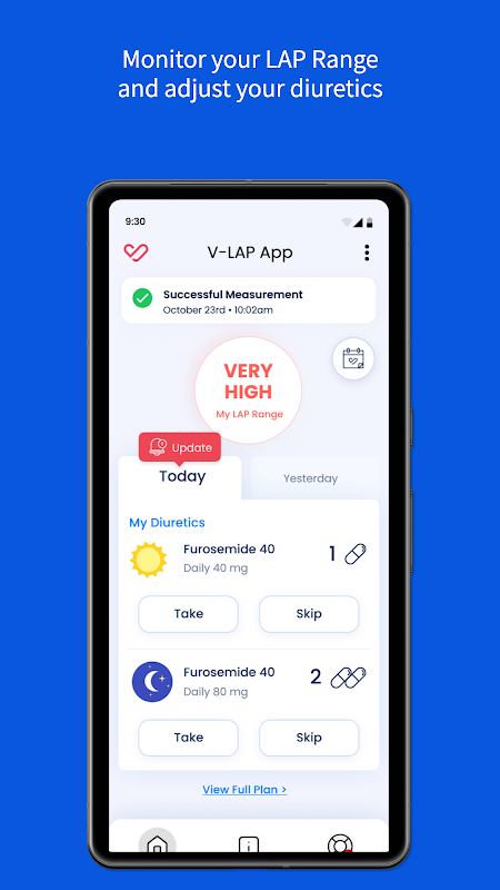 Dokonując codziennych odczytów i korzystając z tej aplikacji, będziesz mógł monitorować natychmiastową wartość LAP i przeglądać trendy, aby uzyskać lepszą widoczność stanu niewydolności serca.