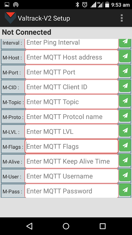 Aplikacja ustawia parametry VALTRACK-V2 GPS Tracker za pomocą Bluetooth prezent na module SIM800. Wykorzystuje protokół SPP aby ustawić parametry.