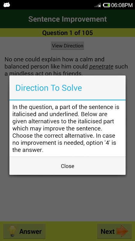 Werbalne i niewerbalne wywiad rozumowanie jest pierwszym etapem krótkich kandydatów do obrotu dla wszystkich rodzajów rekrutacji do pracy zarówno w sektorze prywatnym, jak i rządowy. Jest to najlepsza aplikacja dla mowie, aby poprawić ogólną angielskiego i umiejętności rozumowania na rzecz zatrudnienia. Wiele pytań zostały zaczerpnięte z wcześniejszych dokumentach lat zapytania. Również z wzorami pytanie do angielskiego umiejętności przygotowania testu dla staży w TCS, CTS, Wipro, Infosys, Accenture, Virtusa itp Ten zalogowany aplikacja jest punktem wyjścia dla mowie i logicznego rozumowania części słownej angielskiego Przygotowania.
