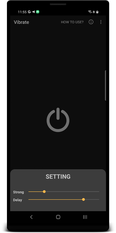 Wyłącz telefon wibruje urządzenie, można ją używać do testowania wibracje telefonu, z masażem, czy coś ci się podoba, mam egzamin na Samsung Galaxy, HTC, Sony, Xiaomi to działa dobrze. Baw się z tego narzędzia :)