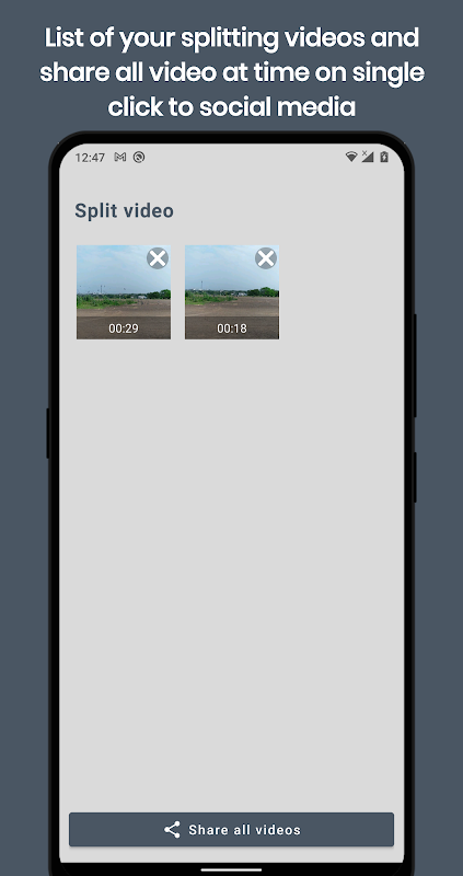 Video Splitter dzieli Twoje filmy w prostych krokach i zapisuje pliki w pamięci telefonu (Galeria). Video Splitter/Slicer zachowuje oryginalną jakość wideo po przetworzeniu.