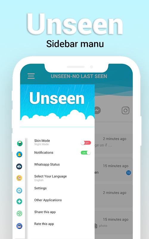 - Read all messenger apps messages with unseen messenger, no blue tick mode.