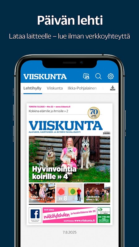 W aplikacji Viiskunta znajdziesz codziennie najnowsze wiadomości, wydarzenia i lokalne historie z Alavutti, Kuortane i Ähtäri. Pobierz aplikację i czytaj stale aktualizowany kanał informacyjny, czasopisma wizualne oraz różnorodne artykuły online ze zdjęciami i filmami. Jeśli chcesz, możesz otrzymywać powiadomienia o najważniejszych wydarzeniach i łatwo wyszukiwać interesujące Cię treści. W aplikacji możesz również bawić się krzyżówkami i sudoku, jednocześnie korzystając z korzyści dla subskrybentów Viiskunty.