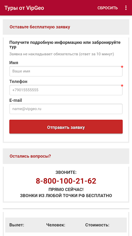 В течении 15 минут с тобой свяжется менеджер и уточнит детали путешествия!