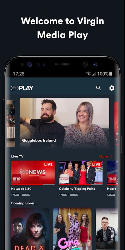 Streamuj telewizję na żywo, oglądaj programy irlandzkie i międzynarodowe dzięki Virgin Media Play.