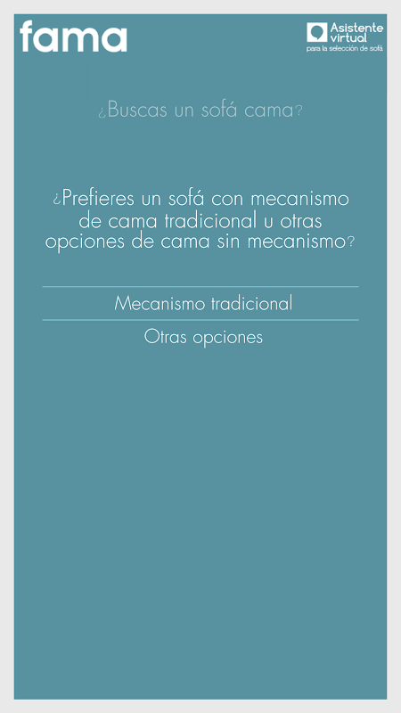 Asystent wirtualny Sława, stworzony, aby pomóc Państwu w wyborze nowego sofa Fame. Z kilku prostych pytań, znajdziemy sofę swoich marzeń.