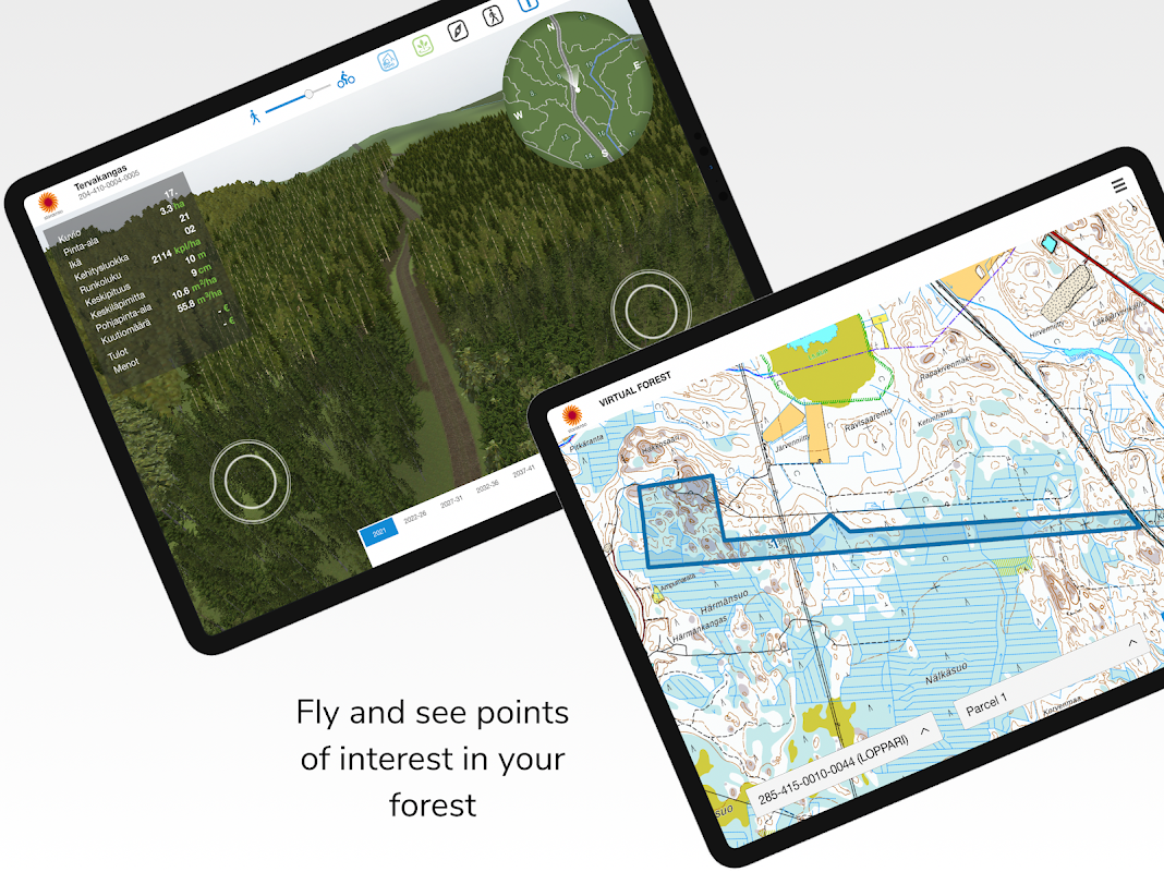 Widok 3D oparty jest na danych z otwartych lasów utrzymywanych przez Fińskie Centrum Leśne. Ponadto do wizualizacji wykorzystuje się również skanowany laserowo model wysokości i ogólne dane mapowe dotyczące jezior, rzek i dróg, sporządzone przez National Land Survey of Finland.