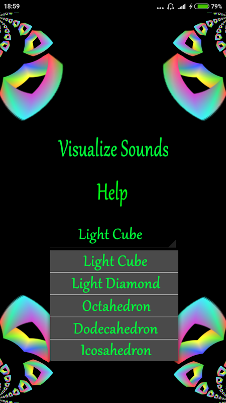 Visual Sounds 3D generuje animowane obrazy na podstawie utworu muzycznego odtwarzanego z urządzenia lub dźwięków pobranych z mikrofonu.