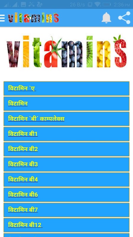 Informacje Vitamins Guide विटामिन के स्रोत फायदे और नुकसान APK