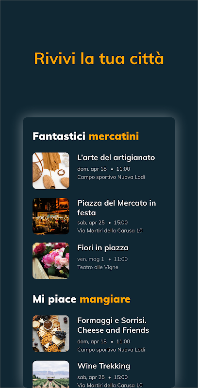 Organizujesz wydarzenie w Lodi i okolicach lub masz sklep? Skontaktuj się z nami, aby umieścić swoją ofertę w aplikacji.