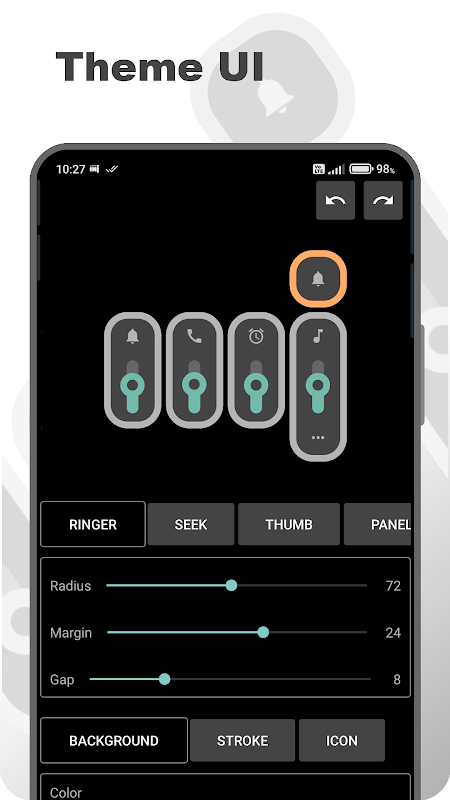 Wirtualne przyciski na krawędzi ekranu i spersonalizowany panel regulacji głośności.