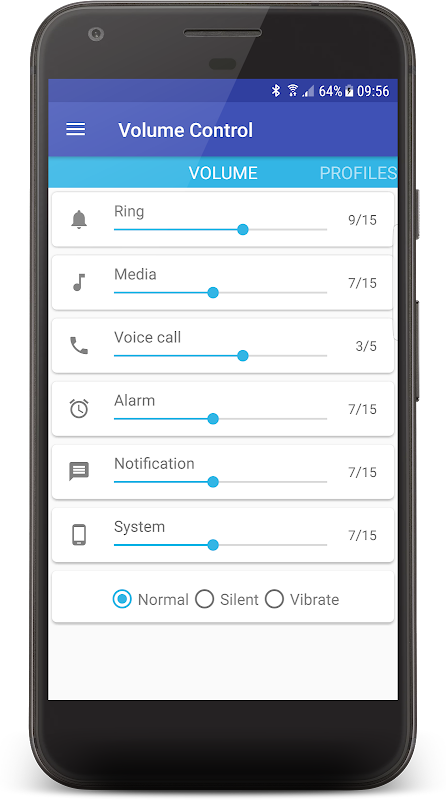 Regulacja głośności / Manager - aplikacja, która kontroluje poziom głośności dla wszystkich strumieni dźwięku w telefonie z systemem Android. Może automatycznie ustawić głośność dowolnego strumienia w określonym czasie.