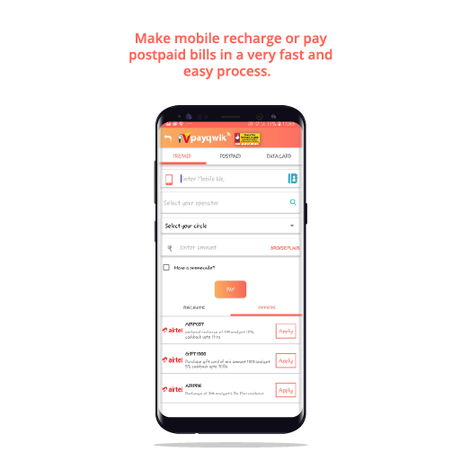VPayQwik is your own digital wallet which allows you to pay different utility bills. This mobile wallet allows customers to pay quickly for any transaction by using mobile application. VPayQwik wallet offers mobile top up, recharge, bill payments such as electricity / landline / post-paid / gas, bus/air ticket, online shopping and many more. It also allows user to transfer fund/ send money across India instantly. With each mobile top up & recharge, customer will get attractive cash backs, coupons & huge discounts on shopping. VPayQwik users can recharge all telco’s prepaid mobile, bill payments to post-paid, landline & electricity, buy bus tickets, airlines tickets, movie tickets & shop online.