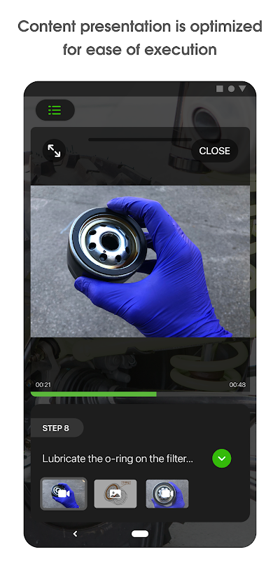 Vuforia Vantage posiada intuicyjny interfejs użytkownika, który zapewnia nowoczesny, spersonalizowany interfejs użytkownika w zakresie dostępu, odkrywania i korzystania z procedur utworzonych za pomocą Vuforia Expert Capture. Wizualnie jasne i zwięzłe instrukcje krok po kroku dostarczane w kontekście z Vuforia Vantage zwiększają efektywność przekazywania i zatrzymywania wiedzy. Cyfrowe przechwytywanie danych ułatwia śledzenie i analizę realizacji procedur pierwszej linii, co sprzyja lepszej komunikacji i ulepszaniu procesów. Vuforia Vantage pomaga użytkownikom szybciej rozpocząć pracę, efektywniej wykorzystywać informacje i ostatecznie zwiększyć produktywność. Vuforia Vantage to właściwy wybór, jeśli chodzi o zapewnienie wartości rozszerzonych instrukcji pracy Vuforia zespołom pierwszej linii.