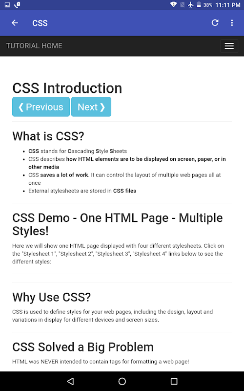 -> This is app is completely offline and the smallest size application of all the existing w3school apps.