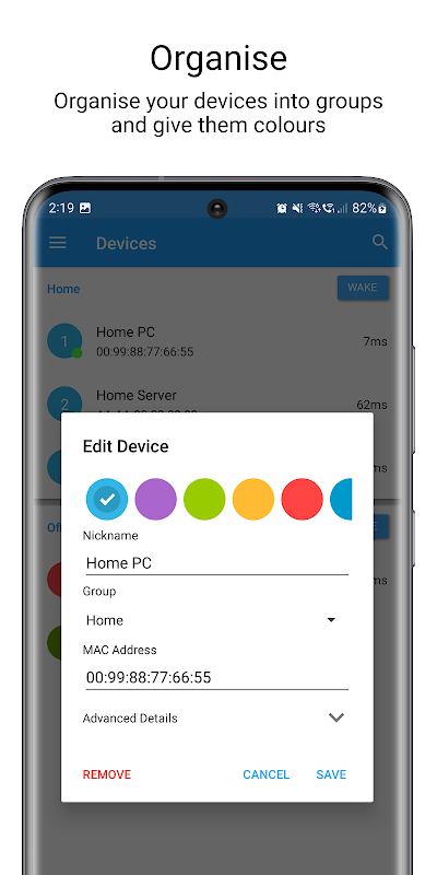 Sieć / WiFi - To jest tak, że aplikacja może faktycznie wysłać magiczne pakiety obudzić urządzeń. Stosowany jest również w oknie wyszukiwania sieci i urządzeń ping, aby zobaczyć czy są online.