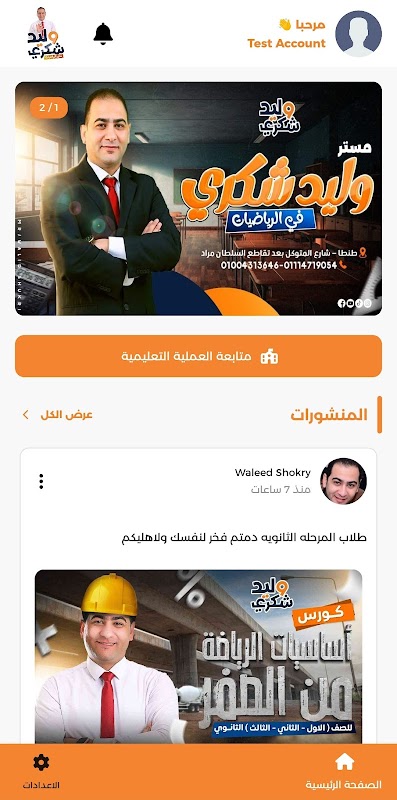 - تعرض إعلانات خاصة بالدورات والمستجدات التعليمية التي يقدمها مستر وليد شكري، مما يضمن اطلاعك الدائم على أحدث العروض والمحتويات.