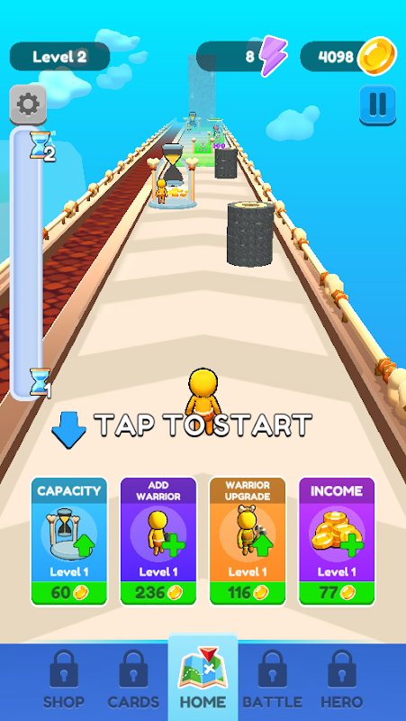 Z każdym biegiem gromadź walutę i zasoby, aby odblokować nowe umiejętności, ulepszać wojowników i ulepszać swoją bazę. Opanuj mechanikę osi czasu, aby zsynchronizować swoje działania, zapewniając płynną i skuteczną podróż przez poziomy. Czy potrafisz przechytrzyć wyzwania i poprowadzić swój oddział do triumfu?