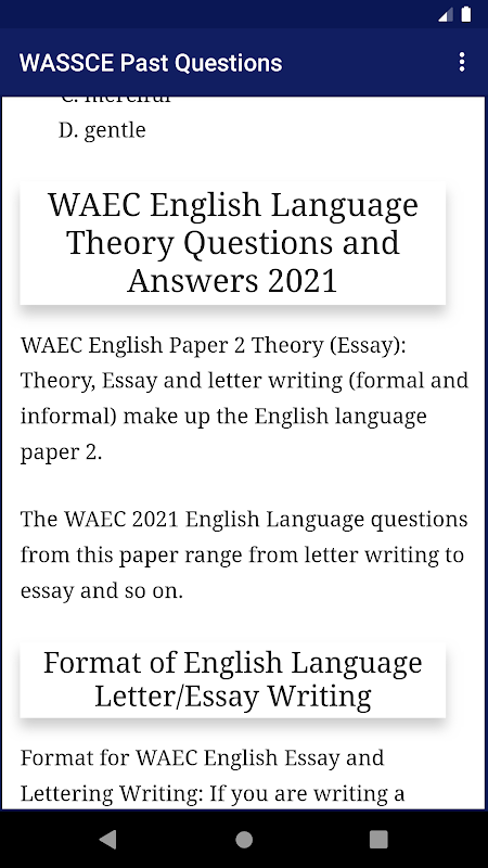 WAEC WASSCE Przeszłe pytania w tej aplikacji to: