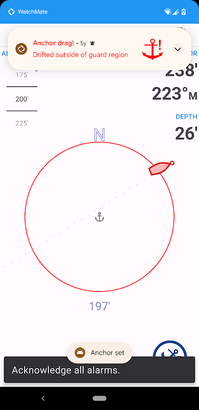 - Ciągle monitoruj alarmy zapobiegania kolizjom, MOB i Anchor Watch generowane przez WatchMate Vision lub XB-8000, nawet gdy aplikacja jest zamknięta.
