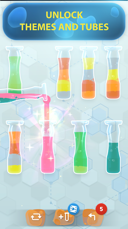 Gdy opanujesz grę, liczba rurek wzrośnie i trudniej będzie ją rozwiązać. Staraj się nie utknąć, ale nie martw się, zawsze możesz ponownie uruchomić poziom w dowolnym momencie lub dodać dodatkową tubę, aby ci pomóc.