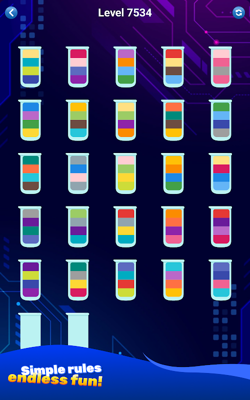 BRAK kar i ograniczeń czasowych; ciesz się Water Sort Puzzle całkowicie we własnym tempie, bez stresu!