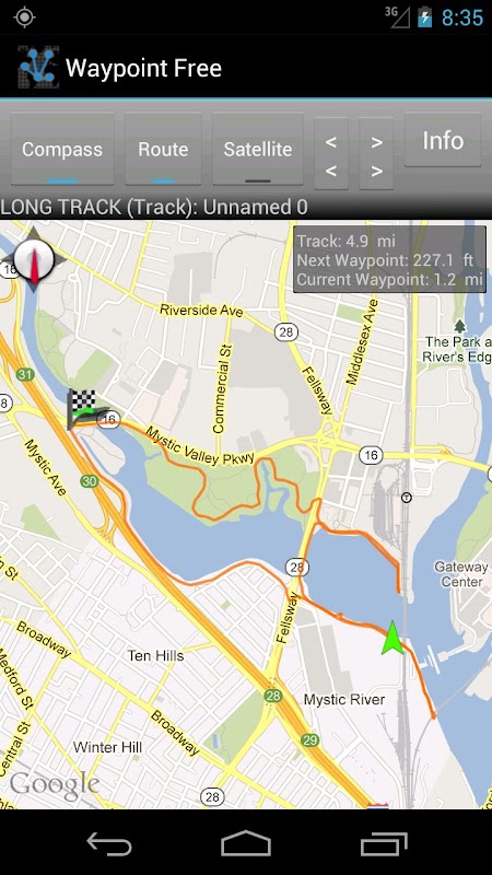 Waypoint to menedżer waypoint, który pozwala na zapisywanie i zarządzanie waypointy. Punkty mogą być wykreślone na mapie, aby uzyskać dostęp do informacji na temat tego punktu lub oglądane w Google Maps, aby uzyskać dostęp do wskazówek, streetviews lub danych map topograficznych, jeśli dostępne.