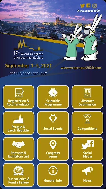 In 2012, the Czech Society of Anaesthesiology and Intensive Care Medicine put forward a bid for Prague as the venue for the 17th WFSA World Congress of Anaesthesiologists in the year 2020. I am proud to announce that during WCA2012 in Buenos Aires, Argentina, the Venue Committee had chosen Prague, Czech Republic, as the site for WCA2020. Their decision was publicly announced during the Closing Ceremony. The joy and exultation of our delegation after the announcement shall remain for years to come.