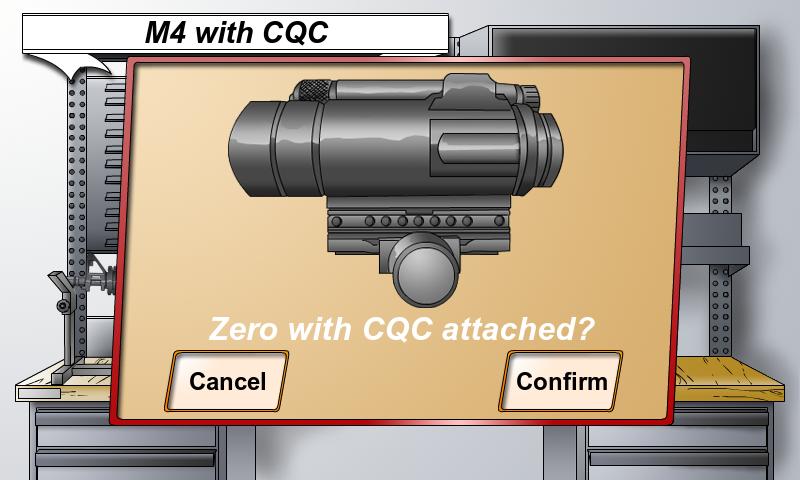 This product assists soldiers with zeroing their weapon's iron sights based off input to replicate shot groups on a zeroing target. The weapons now included in this app are: M16, M4, M249. This product also allows soldiers to zero their scopes based off input to replicated shot groups. The scopes now included in this app are: ACOG and M68 Reflex scope.