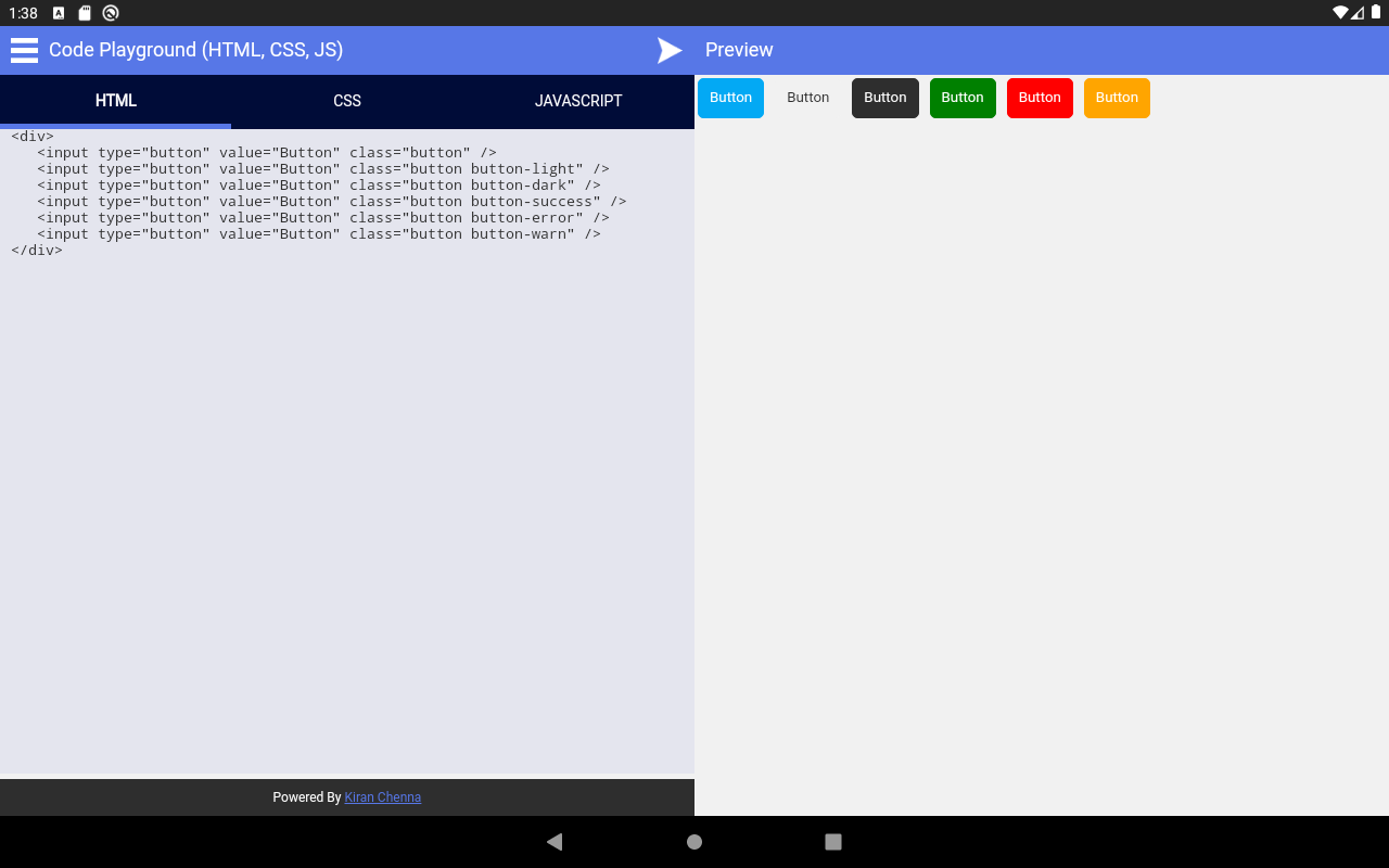 Web App IDE to podstawowe IDE (Playground) do ćwiczenia HTML, CSS, JS na telefonie komórkowym lub tablecie.
