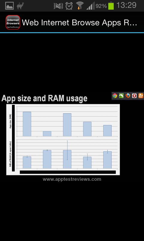 This contents of this app is for informational purposes only. It presents real-world results of data usage and battery consumption of the most popular web or internet browsing apps under standard conditions. Google Chrome, Dolphin Browser, Firefox, Opera and UC Browser are the most downloaded VOiP apps for Android smartphhones and tablets, and as such were reviewed in this comparitive analysis.