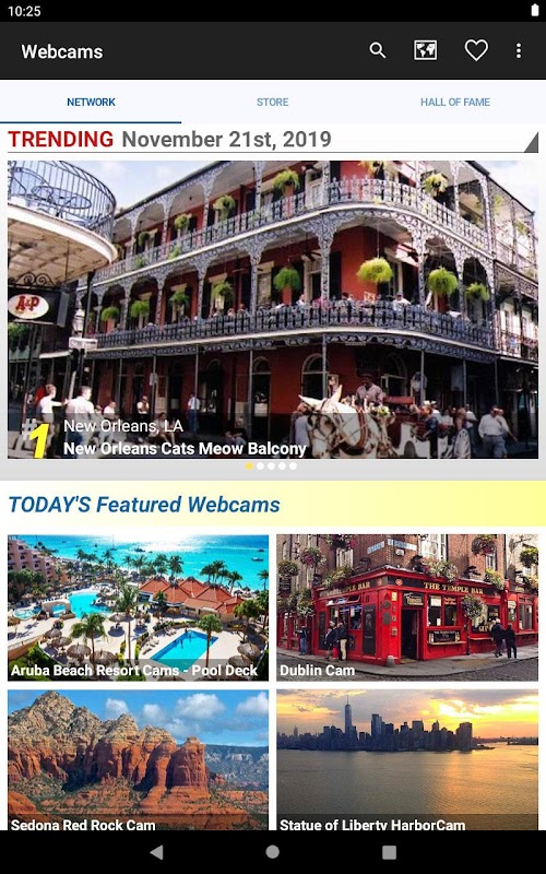 Dzięki aplikacji Kamery internetowe EarthCam możesz podróżować po całym świecie, odwiedzając malownicze i charakterystyczne miejsca za pośrednictwem naszej unikalnej sieci transmisji wideo na żywo w jakości HD i megapikselowych kamer migawkowych. Zasubskrybuj teraz, aby oglądać setki transmisji na żywo za jedyne 4,99 USD rocznie i tworzyć własną, spersonalizowaną listę obserwowanych. Przeglądaj Galerię Sław, aby cieszyć się najlepszymi archiwami zdjęć przesłanymi przez odwiedzających EarthCam.com i udostępniać swoje ulubione!